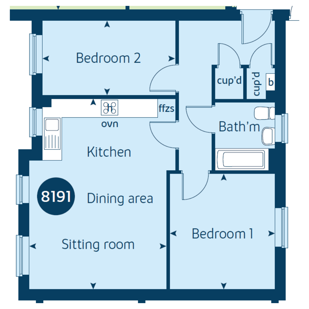 Home 8191 is a modern energy efficient 2-bedroom ground floor apartment featuring an open plan living space, generously sized bedrooms and a modern family bathroom. Entering through the hallway you will find two handy storage cupboards, modern bathroom and two well proportioned bedrooms. Moving through the apartment you will find the combined kitchen/ sitting /dining room – the perfect spot to unwind or entertain guests.