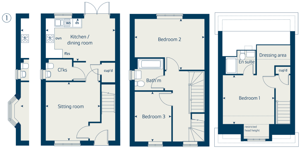 READY NOW WITH FLOORING AND TURF INCLUDED! The Beech is a fantastic three storey home created for those who want a balance between family time and quiet relaxation. Downstairs features a welcoming sitting room, open plan kitchen/dining room with French doors leading to the garden and handy cloakroom. Upstairs the first floor has two spacious bedrooms and an attractive family bathroom, while the second floor features a spacious double bedroom complete with en-suite and large dressing area.